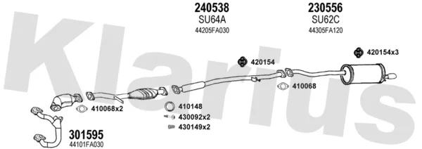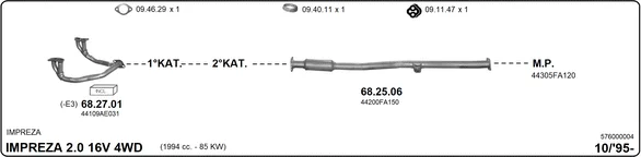 SUBARU IMPREZA kupé (GFC) 2.0 AWD (GC8) - Výfukový systém - kompletní od 12/1995 do 12/2000, 1994 ccm, 85 kW, 115 hp, EJ201, EJ20E, kupé
