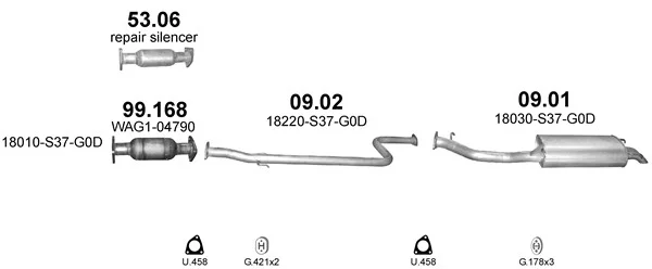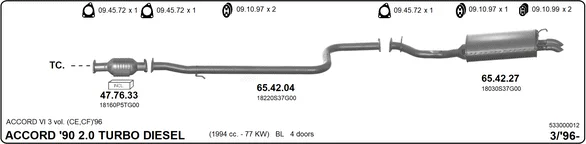 HONDA ACCORD V (CE, CF_, CD) 2.0 TDi (CF1) - Výfukový systém - kompletní od 4/1996 do 10/1998, 1994 ccm, 77 kW, 105 hp, 20T2N, limuzína