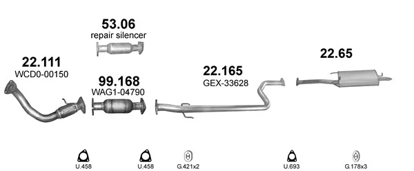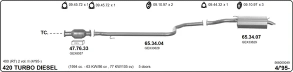 ROVER 400 II Šikmá zadní část (RT) 420 Di - Výfukový systém - kompletní od 5/1995 do 3/2000, 1994 ccm, 77 kW, 105 hp, 20 T2N, Šikmá zadní část