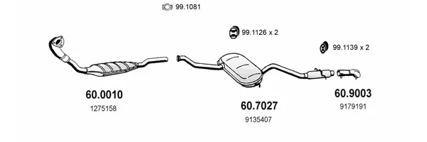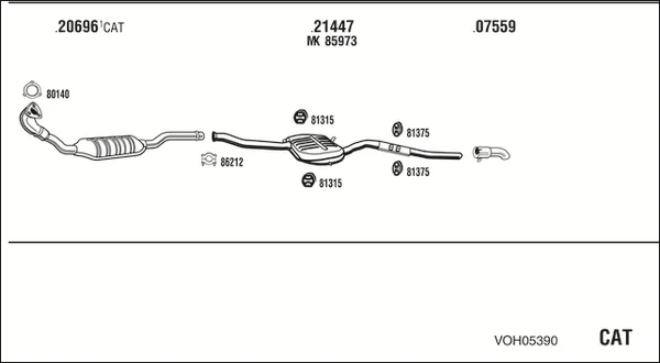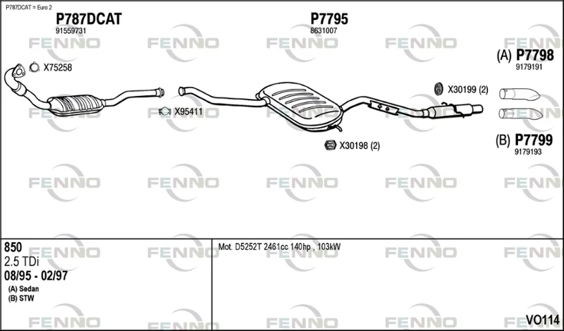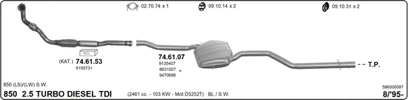 VOLVO 850 (854) 2.5 TDI - Výfukový systém - kompletní od 8/1995 do 12/1996, 2460 ccm, 103 kW, 140 hp, D 5252 T, limuzína