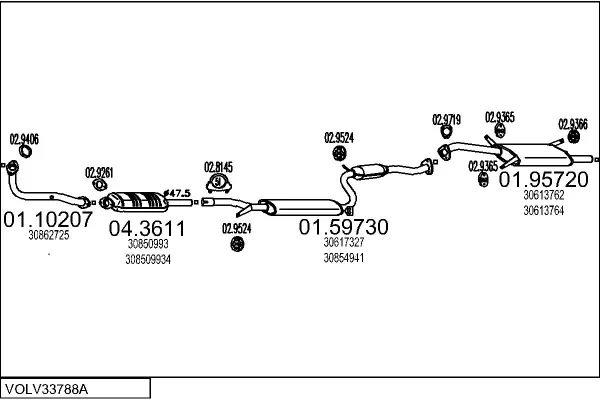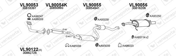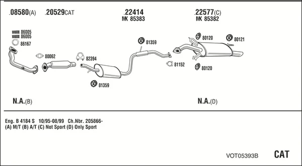 VOLVO S40 I (644) 1.8 - Výfukový systém - kompletní od 7/1995 do 8/1999, 1731 ccm, 85 kW, 115 hp, B 4184 S, B 4184 S3, limuzína