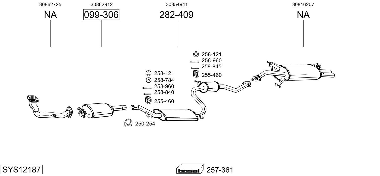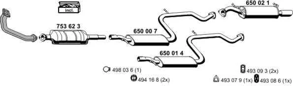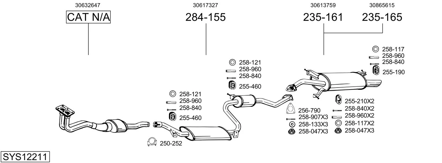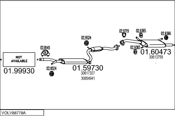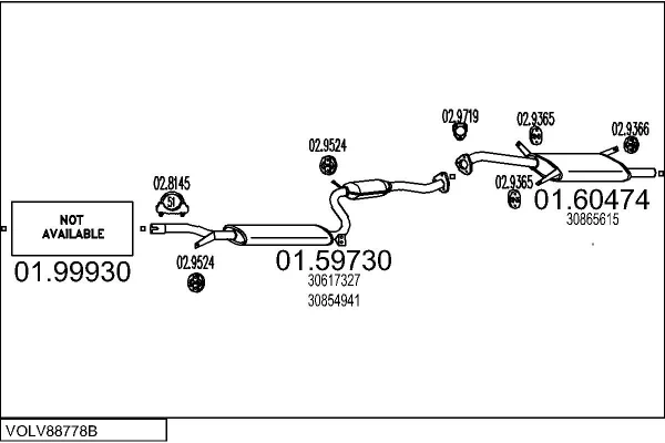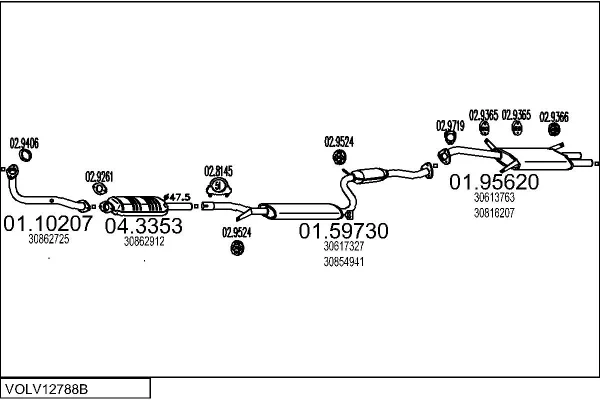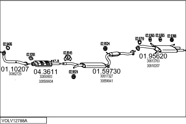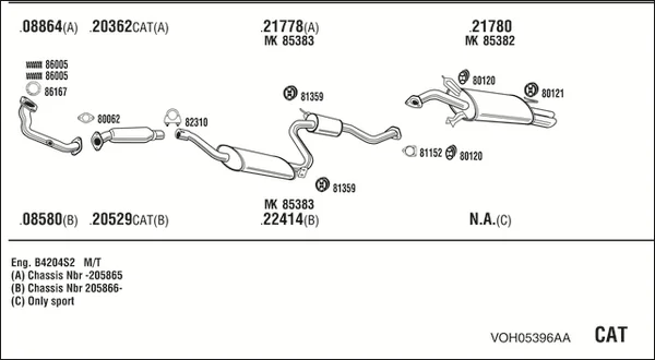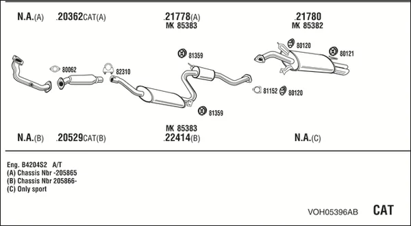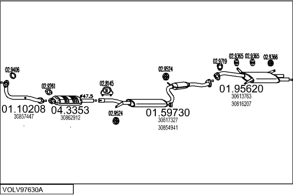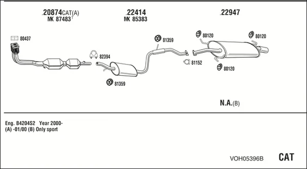 VOLVO V40 kombi (645) 2.0 - Výfukový systém - kompletní od 7/1995 do 6/2004, 1948 ccm, 100 kW, 136 hp, B 4204 S, B 4204 S2, kombi