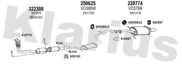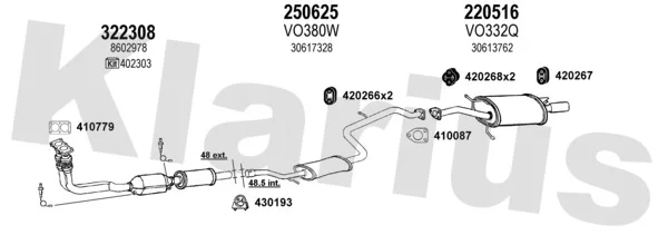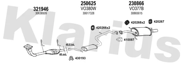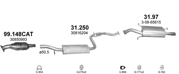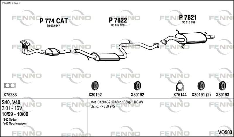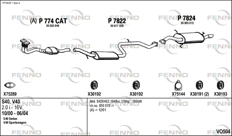 VOLVO V40 kombi (645) 2.0 - Výfukový systém - kompletní od 7/1995 do 6/2004, 1948 ccm, 100 kW, 136 hp, B 4204 S, B 4204 S2, kombi
