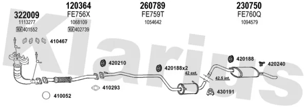 FORD FIESTA Skříňová/velkoprostorová limuzína (J5_, J3_) 1.3 - Výfukový systém - kompletní od 2/1996 do 8/2003, 1299 ccm, 44 kW, 60 hp, J4C, J4J, J4L, J4Q, J4R, J4T, Skříňová/velkoprostorová limuzína