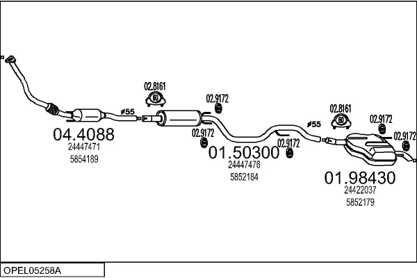 OPEL VECTRA C (Z02) 2.2 DTI 16V (F69) - Výfukový systém - kompletní od 4/2002 do 12/2004, 2172 ccm, 86 kW, 117 hp, Y 22 DTR, limuzína