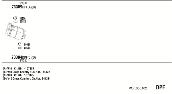 VOLVO V40 Šikmá zadní část (525) D4 - Výfukový systém - kompletní od 3/2012 do 12/2014, 1984 ccm, 130 kW, 177 hp, D 5204 T4, Šikmá zadní část