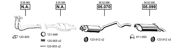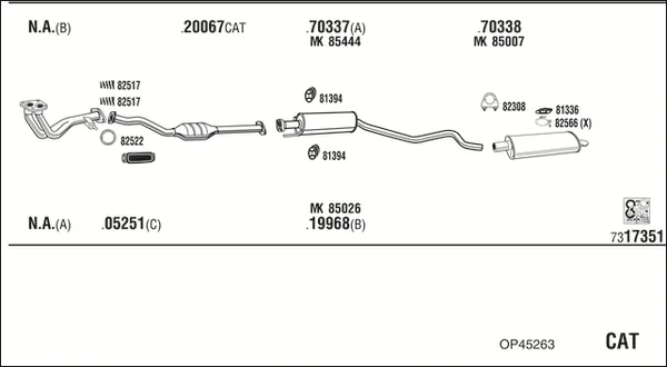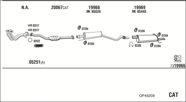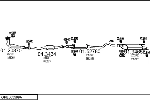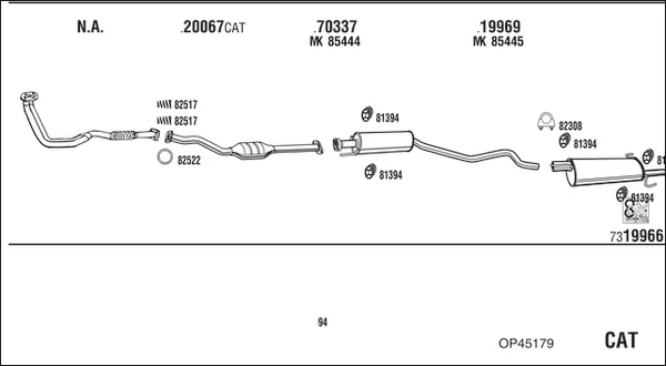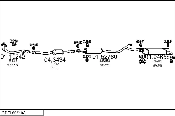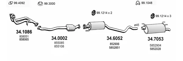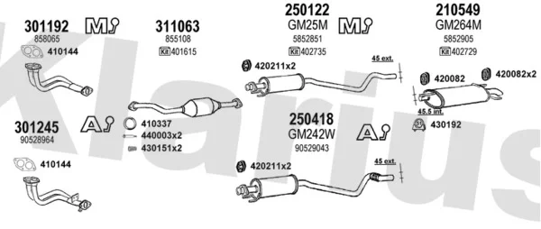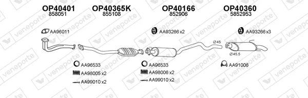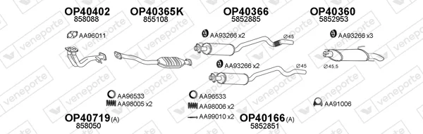 OPEL ASTRA F Šikmá zadní část (T92) 1.4 i 16V (F08, M08, F68, M68) - Výfukový systém - kompletní od 9/1996 do 2/1998, 1389 ccm, 66 kW, 90 hp, X 14 XE, Šikmá zadní část