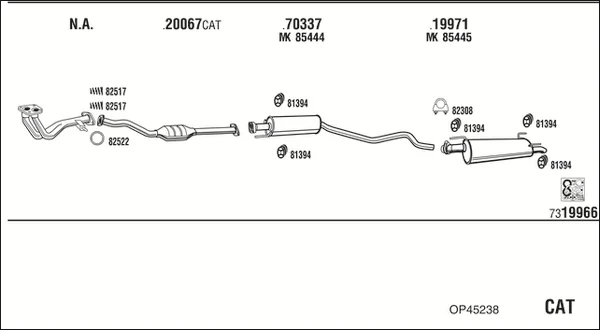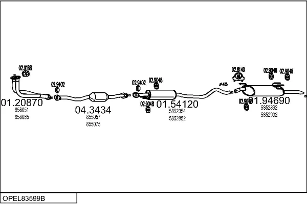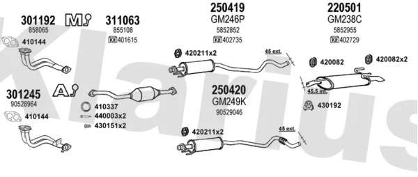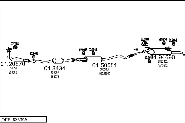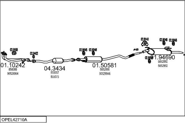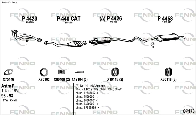 OPEL ASTRA F kombi (T92) 1.4 i 16V (F35, M35) - Výfukový systém - kompletní od 2/1996 do 1/1998, 1389 ccm, 66 kW, 90 hp, X 14 XE, kombi