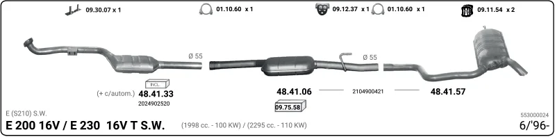 MERCEDES-BENZ E-CLASS T-Model (S210) E 230 T (210.237) - Výfukový systém - kompletní od 6/1996 do 6/1997, 2295 ccm, 110 kW, 150 hp, M 111.970, kombi