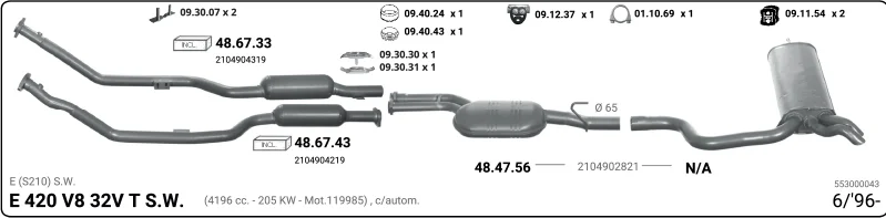 MERCEDES-BENZ E-CLASS T-Model (S210) E 420 T (210.272) - Výfukový systém - kompletní