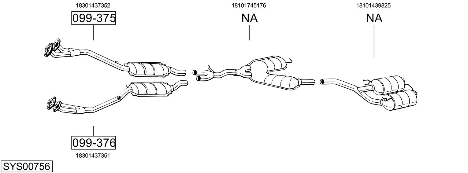 BMW 5 (E39) 535 i - Výfukový systém - kompletní od 6/1996 do 8/1998, 3498 ccm, 173 kW, 235 hp, M62 B35 (358S1), limuzína