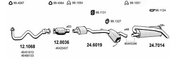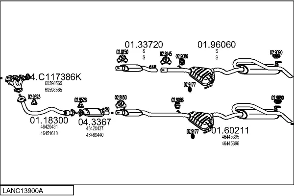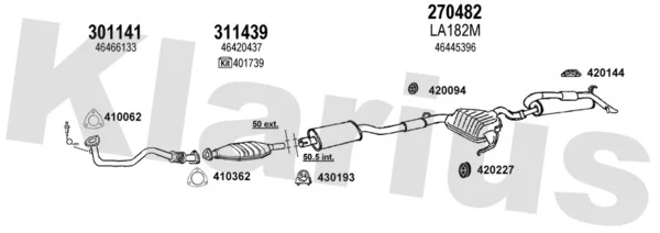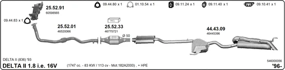 LANCIA DELTA II (836_) 1.8 i.e. 16V (836AQ) - Výfukový systém - kompletní od 3/1996 do 8/1999, 1747 ccm, 83 kW, 113 hp, 182 A2.000, Šikmá zadní část