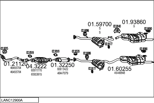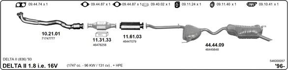 LANCIA DELTA II (836_) 1.8 i.e. 16V GT (836AR) - Výfukový systém - kompletní od 3/1996 do 8/1999, 1747 ccm, 96 kW, 131 hp, 183 A1.000, Šikmá zadní část