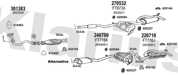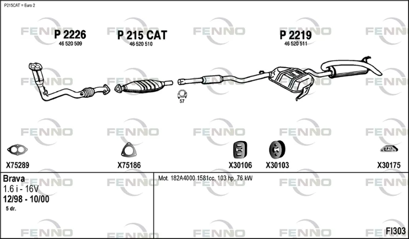 FIAT BRAVA (182_) 1.6 16V (182.BB) - Výfukový systém - kompletní od 2/1996 do 10/2001, 1581 ccm, 76 kW, 103 hp, 182 A4.000, Šikmá zadní část