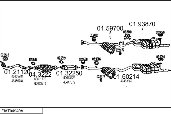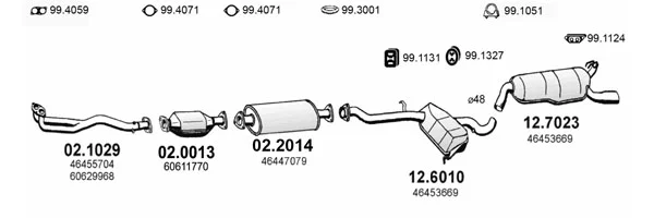 FIAT COUPE (175_) 1.8 16V - Výfukový systém - kompletní od 3/1996 do 8/2000, 1747 ccm, 96 kW, 131 hp, 183 A1.000, kupé