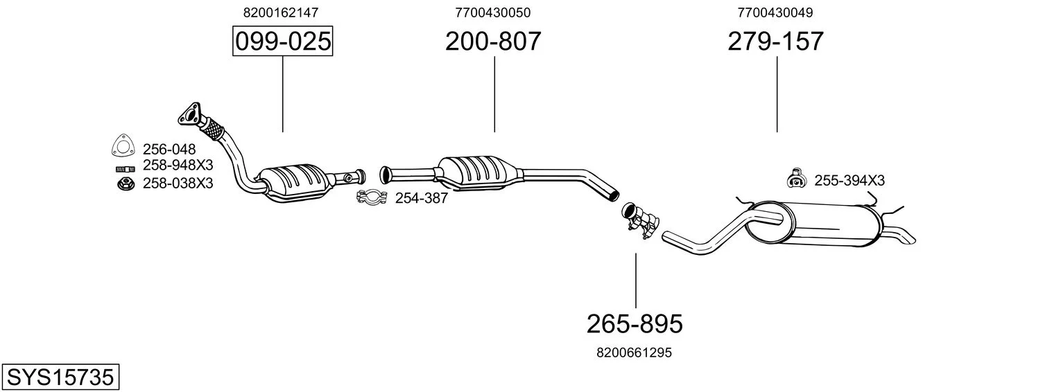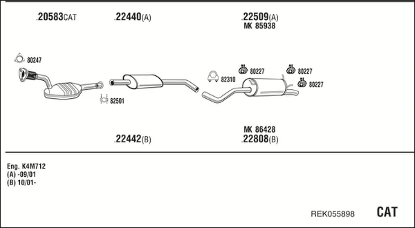 RENAULT SCÉNIC I velkoprostorová limuzína (JA0/1_, FA0_) 1.6 BiFuel - Výfukový systém - kompletní od 3/2001 do 8/2003, 1598 ccm, 75 kW, 102 hp, K4M 712, velkoprostorová limuzína