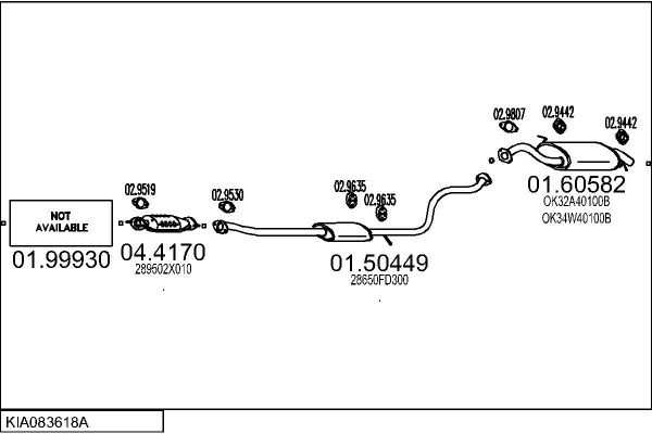 KIA RIO I limuzína (DC_) 1.5 - Výfukový systém - kompletní od 9/2002 do 2/2005, 1493 ccm, 70 kW, 95 hp, A5D, limuzína