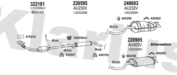 AUDI A3 (8L1) 1.8 - Výfukový systém - kompletní od 9/1996 do 5/2003, 1781 ccm, 92 kW, 125 hp, AGN, APG, Šikmá zadní část