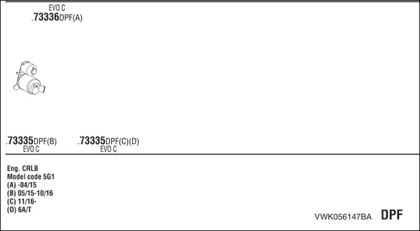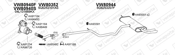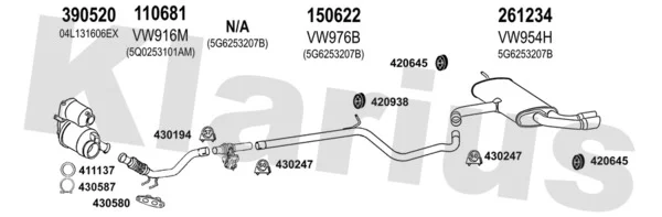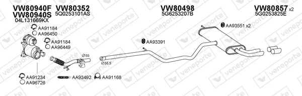 VW GOLF VII (5G1, BQ1, BE1, BE2) 2.0 TDI - Výfukový systém - kompletní od 8/2012 do 8/2020, 1968 ccm, 110 kW, 150 hp, CRBC, CRLB, CRMB, CRUA, DCYA, DEJA, DFGA, Šikmá zadní část