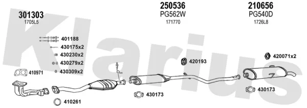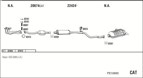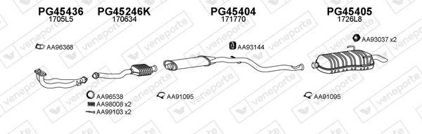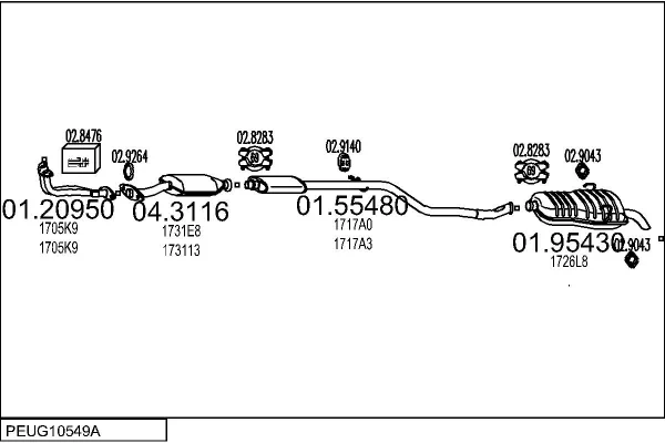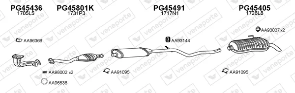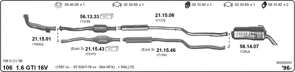 PEUGEOT 106 II (1A_, 1C_) 1.6 S16 - Výfukový systém - kompletní od 5/1996 do 7/2004, 1587 ccm, 87 kW, 118 hp, NFX (TU5J4), Šikmá zadní část
