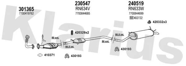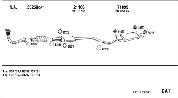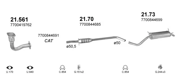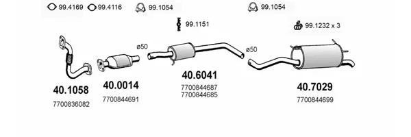 RENAULT MEGANE Scénic (JA0/1_) 2.0 i (JA0G) - Výfukový systém - kompletní od 1/1997 do 9/1999, 1998 ccm, 84 kW, 114 hp, F3R 750, F3R 751, velkoprostorová limuzína