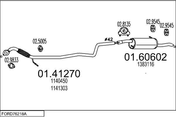 FORD FUSION (JU_) 1.4 LPG - Výfukový systém - kompletní od 1/2010 do 12/2012, 1388 ccm, 59 kW, 80 hp, UTJA, kombi