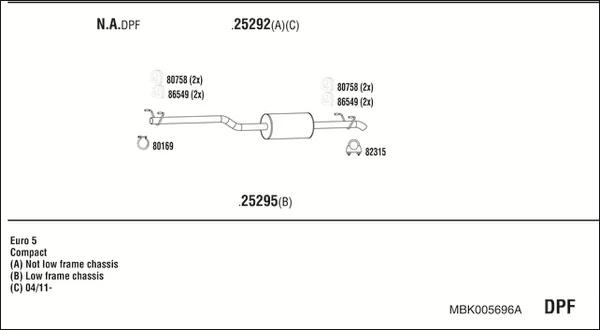 MERCEDES-BENZ SPRINTER 3,5-t Krabice (B906) 319 CDI / BlueTEC 4x4 (906.631, 906.633, 906.635,... - Výfukový systém - kompletní od 3/2009 do 12/2018, 2987 ccm, 140 kW, 190 hp, OM 642.896, OM 642.898, OM 642.986, OM 642.992, Krabice