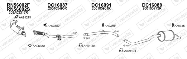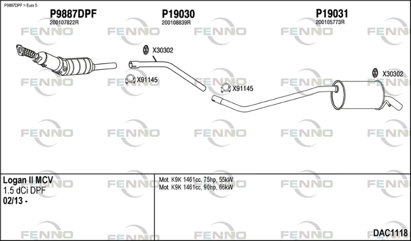 DACIA LOGAN MCV II 1.5 dCi - Výfukový systém - kompletní od 2/2013, 1461 ccm, 55 kW, 75 hp, K9K 612, K9K 626, kombi