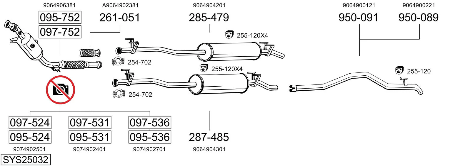 MERCEDES-BENZ SPRINTER 5-t valník/podvozek (B906) 513 CDI (906.155, 906.253, 906.255, 906.153) - Výfukový systém - kompletní od 6/2006 do 12/2016, 2143 ccm, 95 kW, 129 hp, OM 651.955, OM 651.956, OM 651.957, valník/podvozek
