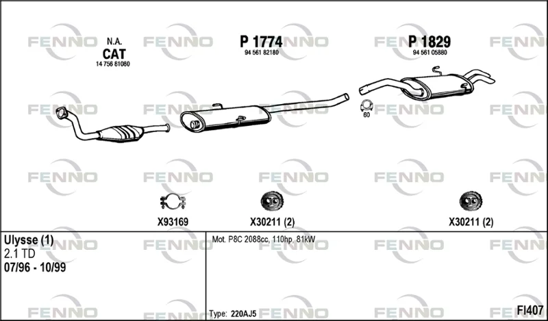 FIAT ULYSSE (220_) 2.1 TD - Výfukový systém - kompletní od 3/1996 do 10/1999, 2088 ccm, 80 kW, 109 hp, P8C, velkoprostorová limuzína