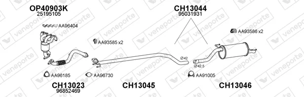 CHEVROLET AVEO Šikmá zadní část (T300) 1.2 LPG - Výfukový systém - kompletní od 11/2012 do 12/2015, 1229 ccm, 63 kW, 86 hp, LDC, Šikmá zadní část