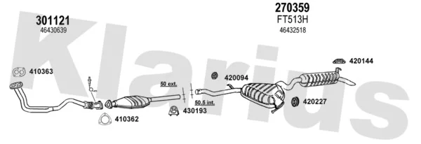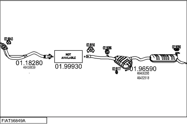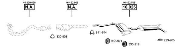 FIAT BRAVO I (182_) 1.4 (182.AA) - Výfukový systém - kompletní od 10/1995 do 10/2001, 1370 ccm, 59 kW, 80 hp, 182 A3.000, Šikmá zadní část