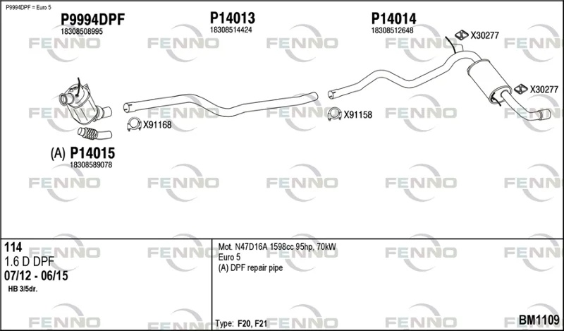 BMW 1 (F20) 114 d - Výfukový systém - kompletní od 11/2012 do 6/2015, 1598 ccm, 70 kW, 95 hp, N47 D16 A, Šikmá zadní část