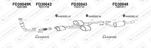 FORD SCORPIO II Turnier (GNR, GGR) 2.3 i 16V - Výfukový systém - kompletní od 6/1996 do 8/1998, 2295 ccm, 108 kW, 147 hp, Y5A, kombi