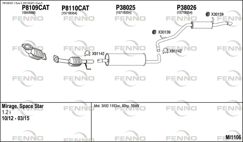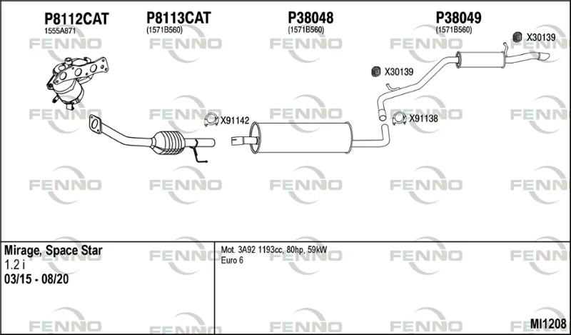 MITSUBISHI MIRAGE / SPACE STAR VI Šikmá zadní část (A0_A) 1.2 (A03A) - Výfukový systém - kompletní od 10/2012, 1193 ccm, 59 kW, 80 hp, 3A92, Šikmá zadní část