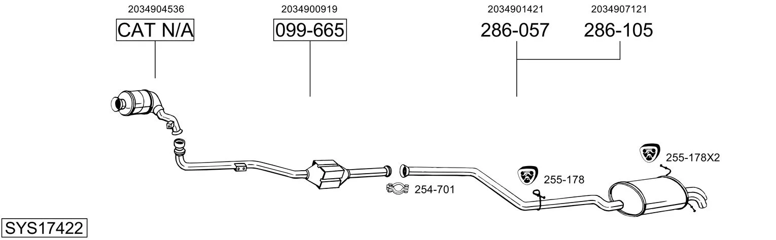 MERCEDES-BENZ C-CLASS T-Model (S203) C 220 CDI (203.208) - Výfukový systém - kompletní od 8/2006 do 8/2007, 2148 ccm, 100 kW, 136 hp, OM 646.963, kombi