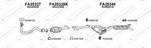 FIAT MAREA Weekend (185_) 1.4 80 12V - Výfukový systém - kompletní od 9/1996 do 5/2002, 1370 ccm, 59 kW, 80 hp, 182 A3.000, kombi