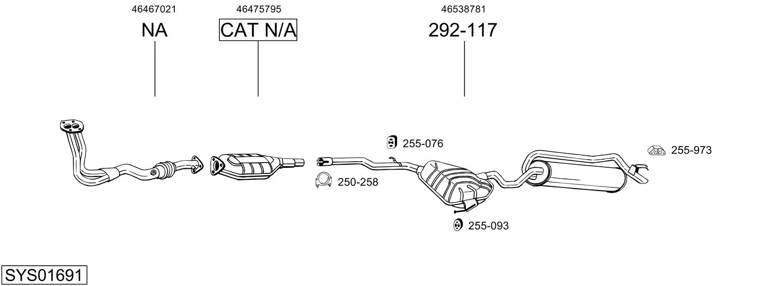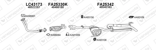 FIAT MAREA Weekend (185_) 1.6 100 16V - Výfukový systém - kompletní od 9/1996 do 5/2002, 1581 ccm, 76 kW, 103 hp, 182 A4.000, kombi