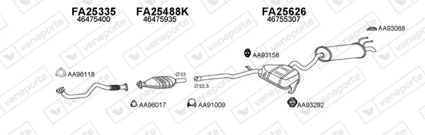 FIAT MAREA Weekend (185_) 1.9 TD 100 (185BX_) - Výfukový systém - kompletní od 9/1996 do 6/2003, 1910 ccm, 74 kW, 100 hp, 182 A7.000, 182 B9.000, kombi