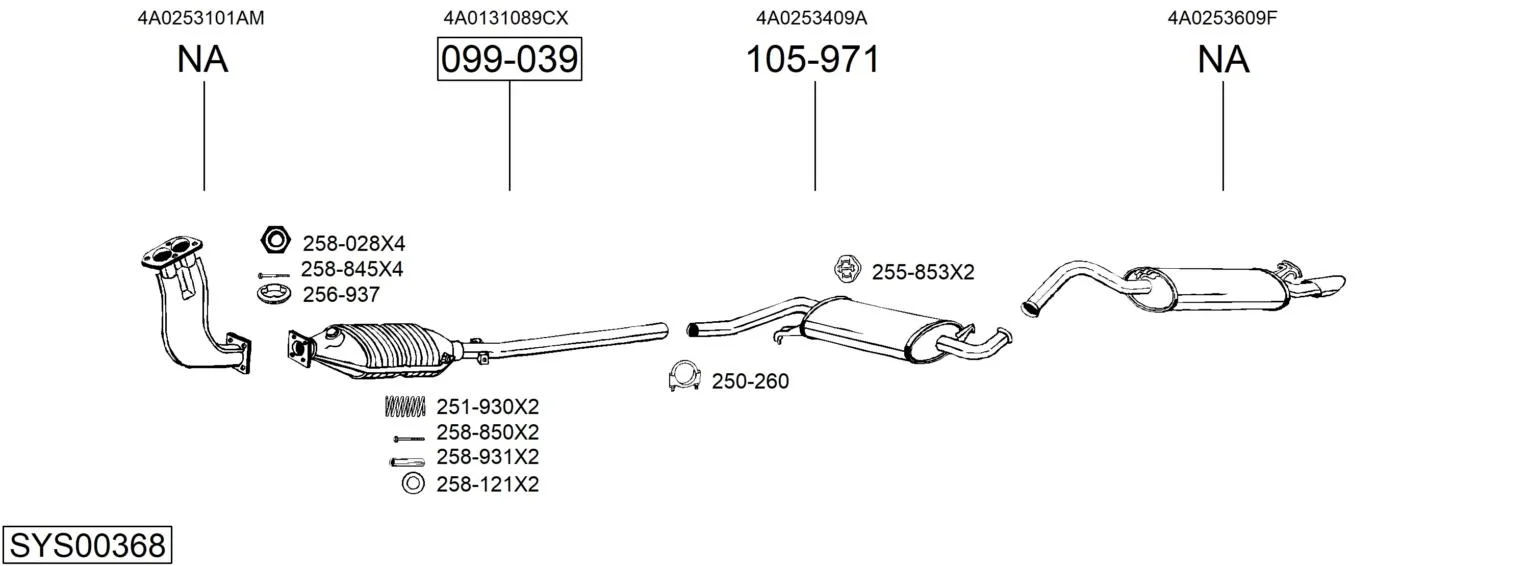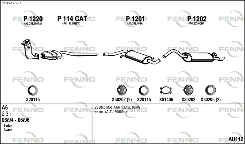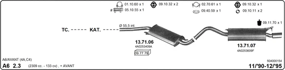 AUDI A6 C4 Avant (4A5) 2.3 - Výfukový systém - kompletní od 6/1994 do 12/1995, 2309 ccm, 98 kW, 133 hp, AAR, kombi