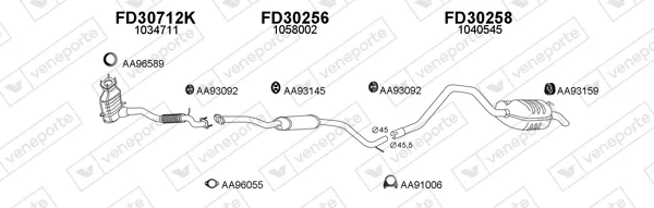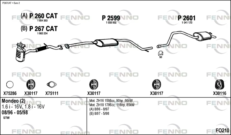 FORD MONDEO II Turnier (BNP) 1.6 i - Výfukový systém - kompletní od 8/1996 do 9/2000, 1597 ccm, 66 kW, 90 hp, L1J, kombi