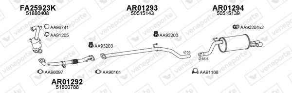 ALFA ROMEO MITO (955_) 1.4 Turbo MultiAir (955AXS1B, 955AXS11) - Výfukový systém - kompletní od 10/2009 do 10/2018, 1368 ccm, 120 kW, 163 hp, 955 A8.000, Šikmá zadní část