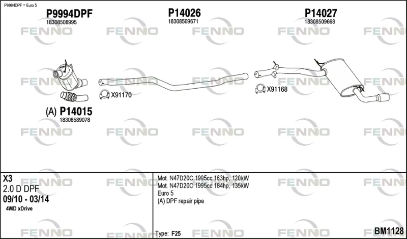 BMW X3 (F25) xDrive 20 d - Výfukový systém - kompletní od 9/2010 do 8/2017, 1995 ccm, 120 kW, 163 hp, B47 D20 A, N47 D20 C, SUV