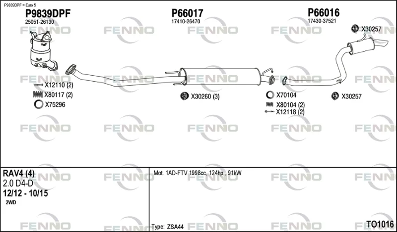 TOYOTA RAV 4 IV (_A4_) 2.0 D (ALA40_, ALA40R) - Výfukový systém - kompletní od 12/2012 do 11/2018, 1998 ccm, 91 kW, 124 hp, 1AD-FTV, SUV