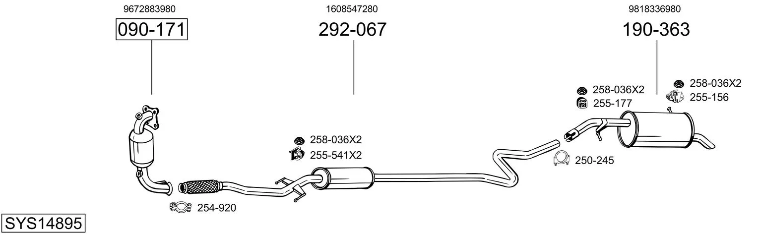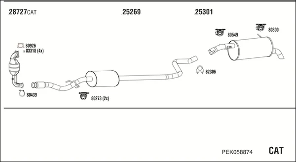 PEUGEOT 2008 I (CU_) 1.2 VTi - Výfukový systém - kompletní od 3/2013 do 12/2018, 1199 ccm, 60 kW, 82 hp, HMZ (EB2), HMZ (EB2F), SUV