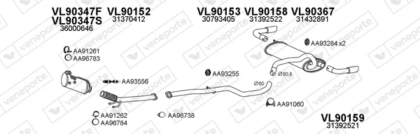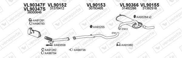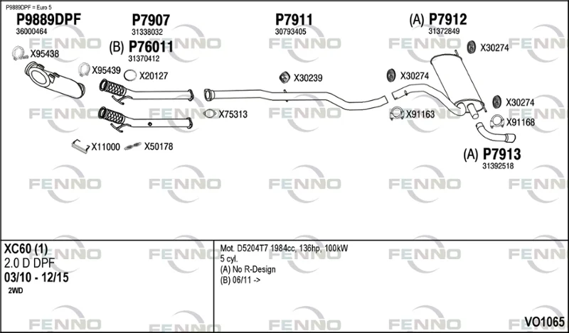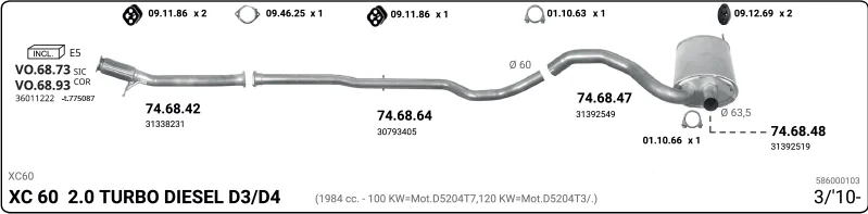 VOLVO XC60 I SUV (156) D3 - Výfukový systém - kompletní od 4/2012 do 12/2015, 1984 ccm, 100 kW, 136 hp, D 5204 T7, SUV