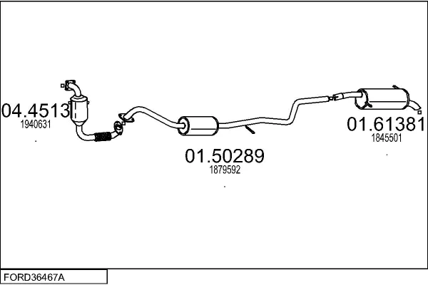 FORD FIESTA VI (CB1, CCN) 1.0 EcoBoost - Výfukový systém - kompletní od 1/2013 do 4/2017, 998 ccm, 74 kW, 100 hp, SFJA, SFJB, SFJC, SFJD, Šikmá zadní část