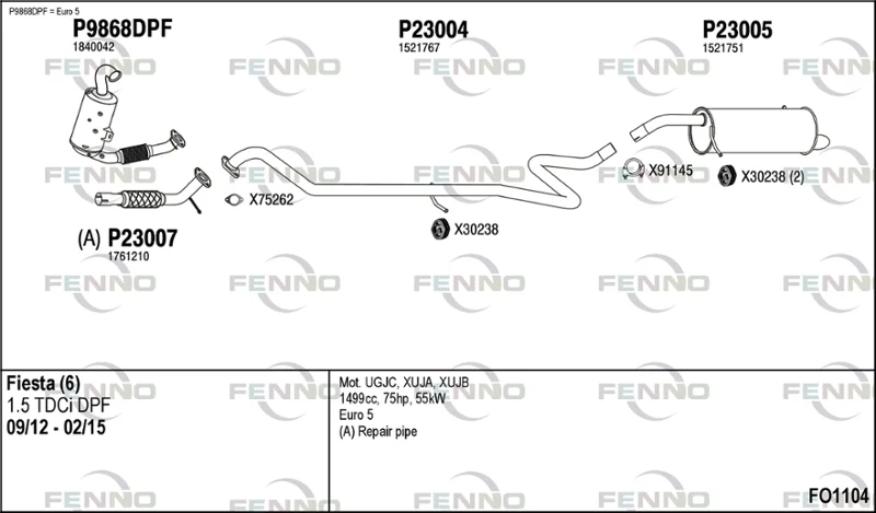 FORD FIESTA VI (CB1, CCN) 1.5 TDCi - Výfukový systém - kompletní od 9/2012 do 4/2017, 1499 ccm, 55 kW, 75 hp, UGJC, XUJA, XUJB, Šikmá zadní část