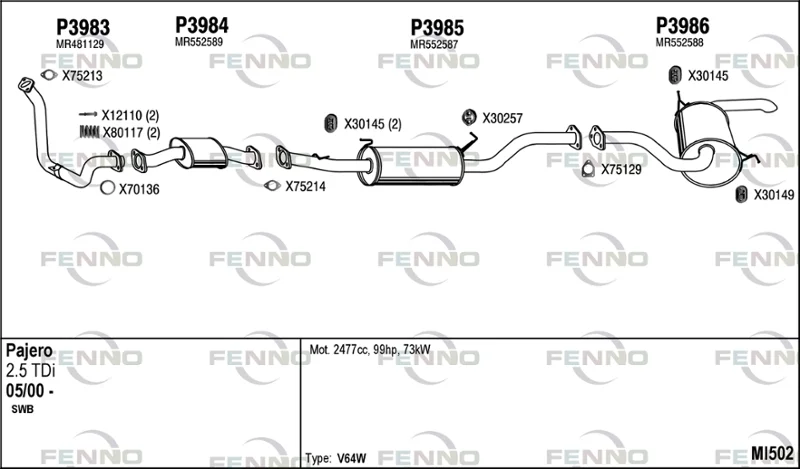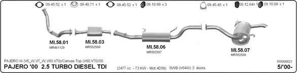 MITSUBISHI PAJERO III (V7_W, V6_W) 2.5 TDi (V64W) - Výfukový systém - kompletní