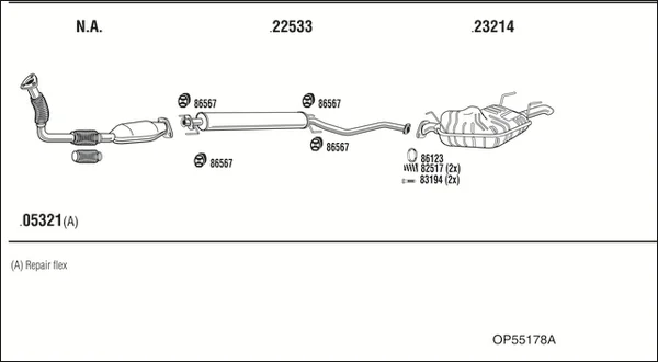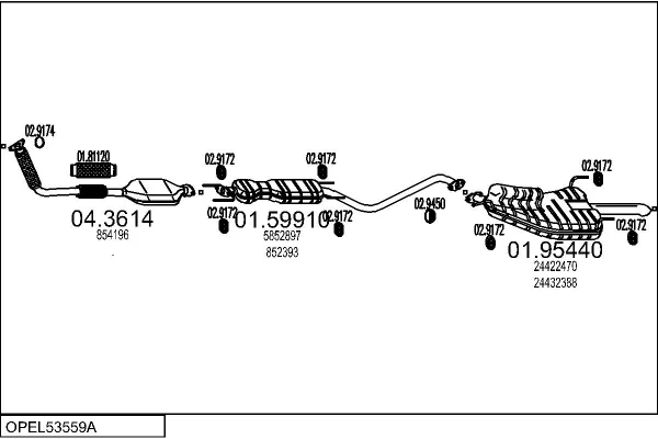 OPEL VECTRA B Šikmá zadní část (J96) 2.0 DI 16V (F68) - Výfukový systém - kompletní od 11/1996 do 6/2000, 1995 ccm, 60 kW, 82 hp, X 20 DTL, Šikmá zadní část